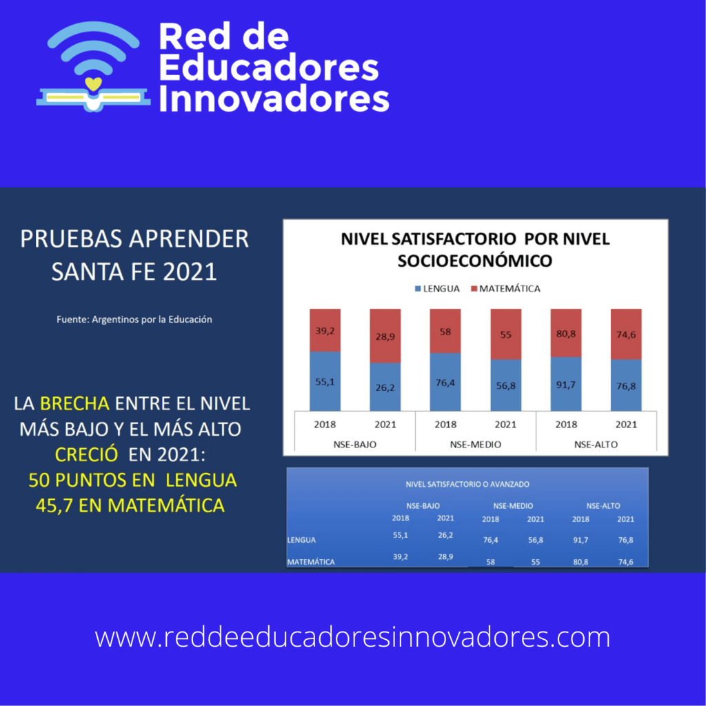 La brecha etre los estudiantes del NSE más bajo y el más alto creció significativamente, 50 puntos en Lengua y casi 46% en Matemática. Los datos de 2018, no eran buenos, si consideramos que la diferencia en ese momento era del 36,6% en Lengua y 41,6 en Matemática.